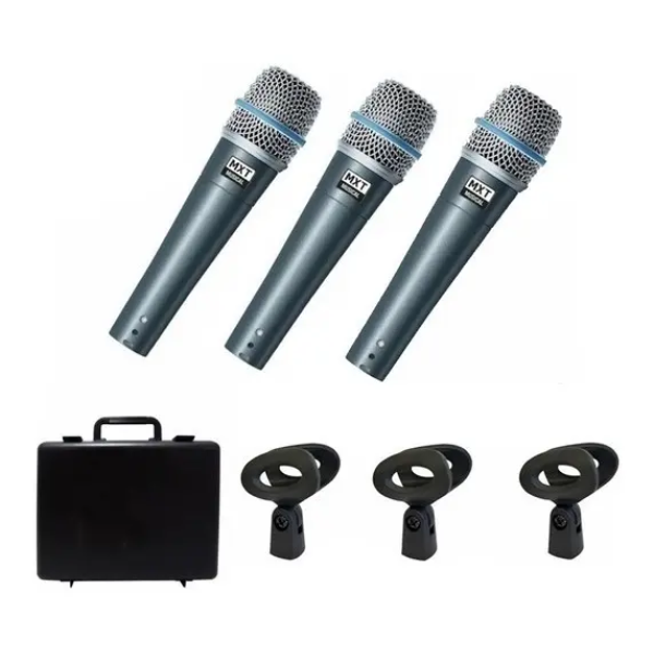 Este kit oferece a durabilidade do corpo em metal chumbo e a praticidade da chave liga/desliga em três unidades do modelo BTM-57A, garantindo qualidade profissional consistente para múltiplas vozes ou instrumentos com ótimo custo-benefício.